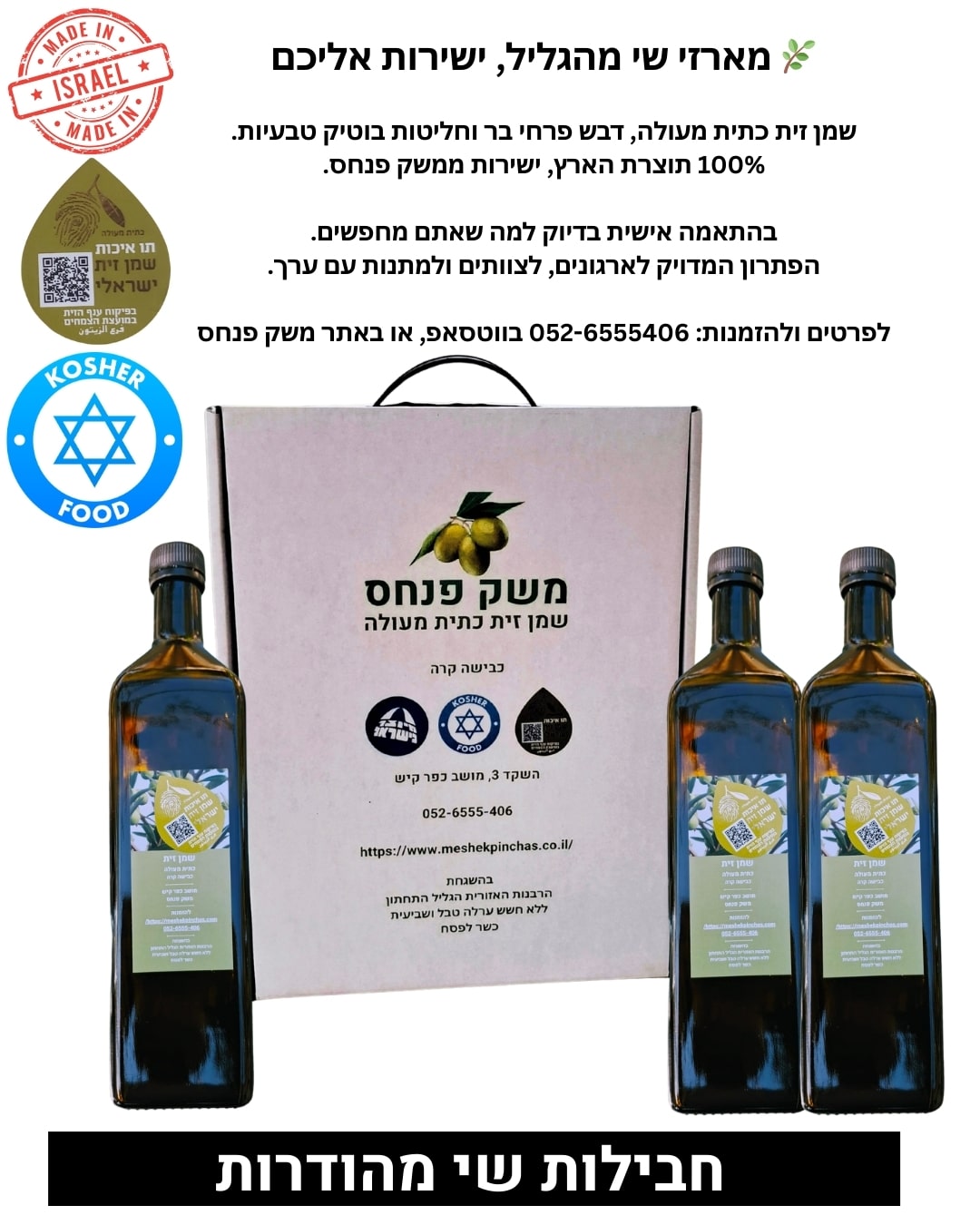 אל תחכו! הזמינו עכשיו את מארז שמן הזית הכתית המשובח של משק פנחס ותיהנו מחוויה קולינרית שאין כמותה.
